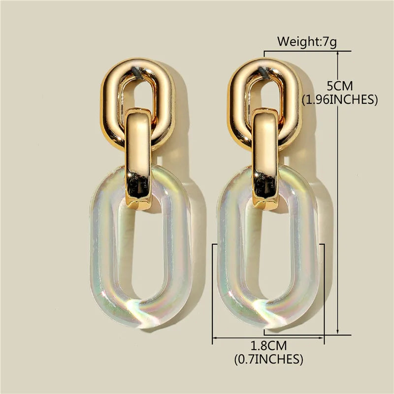 Upgrade your style with these Iridescent Chain Link Drop Earrings from The Mirage Fashion, designed to make a bold yet elegant statement. Featuring a sleek gold-tone chain link stud paired with a translucent iridescent acrylic drop, these earrings reflect light beautifully for a chic, contemporary look.