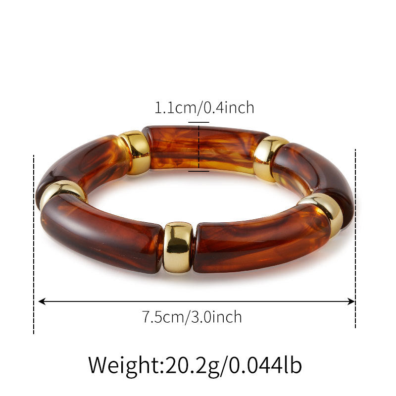 Add a touch of warm elegance to your jewellery collection with this stunning amber finish beaded kada bracelet. Designed with glossy resin tube beads in rich amber tones and finished with gold-accent spacers, this bracelet offers a perfect blend of modern sophistication and timeless charm.