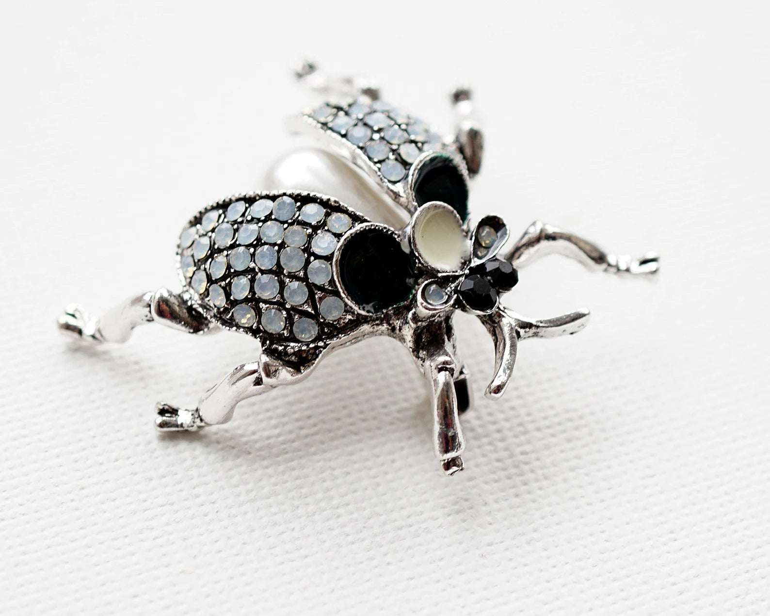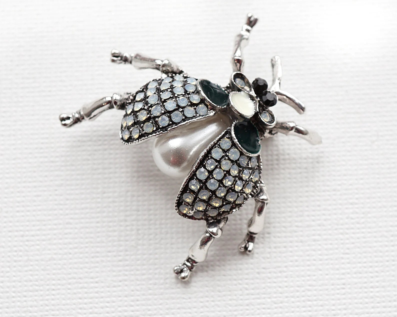 The intricately detailed wings are encrusted with shimmering crystals, while the sculpted body and legs add a striking 3D effect, making this brooch a true conversation starter. A hint of deep green and metallic accents enhances its premium look, perfect for those who love standout fashion accessories.